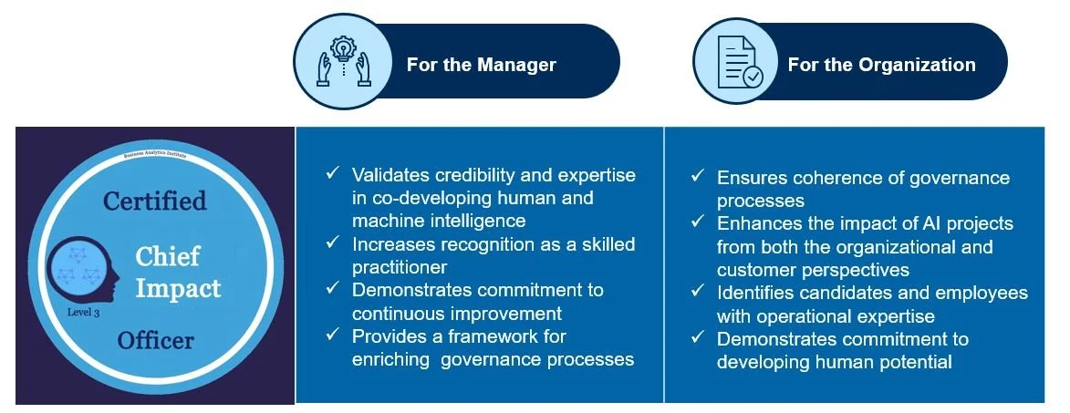 In complementing in-house corporate training initiatives, BAI’s accredited Certification Programs offer managers industry accredited recognition of their applicable expertise. The AI Management Certification (AMC) has been designed to ensure the positive impact of AI projects in the organization and in the market.